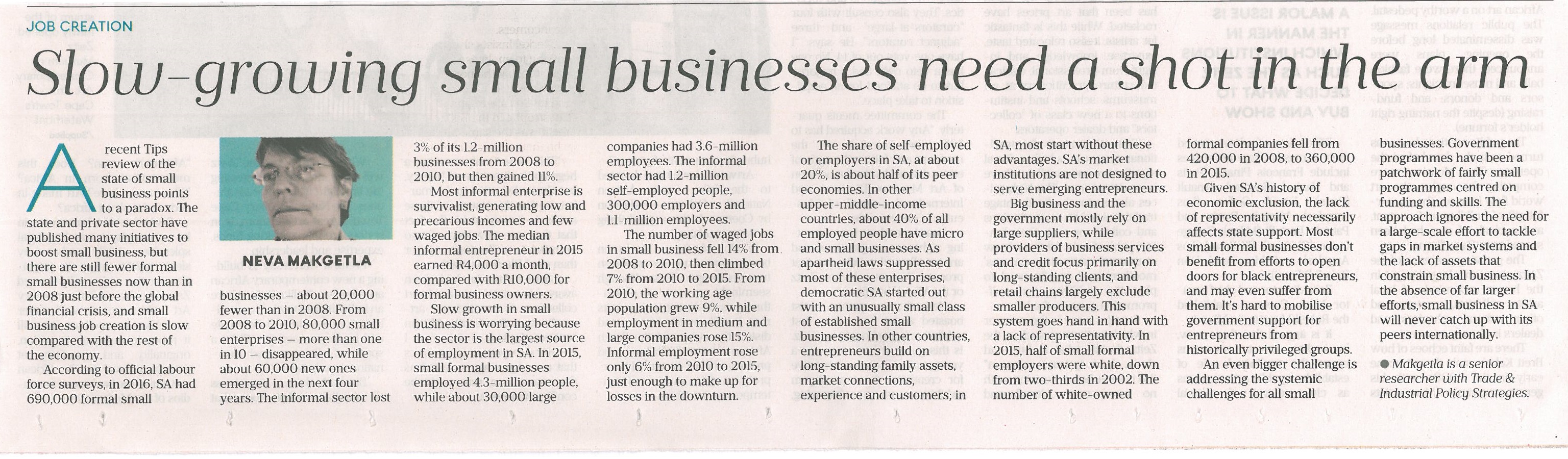 Business Day - 26 September 2017 by Neva Makgetla (TIPS Senior Economist)
